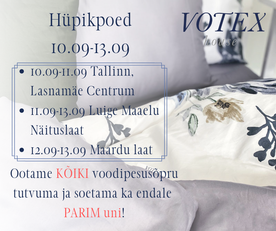 Heihei! Sel nädalalõpul oleme me PARIMA voodipesuga pealinna kandis. Suur valik puuvillast ja puuvillasatiinist voodipesu, mõnusaim kvaliteet ja uskumatult head hinnad. Ootame Sind!
