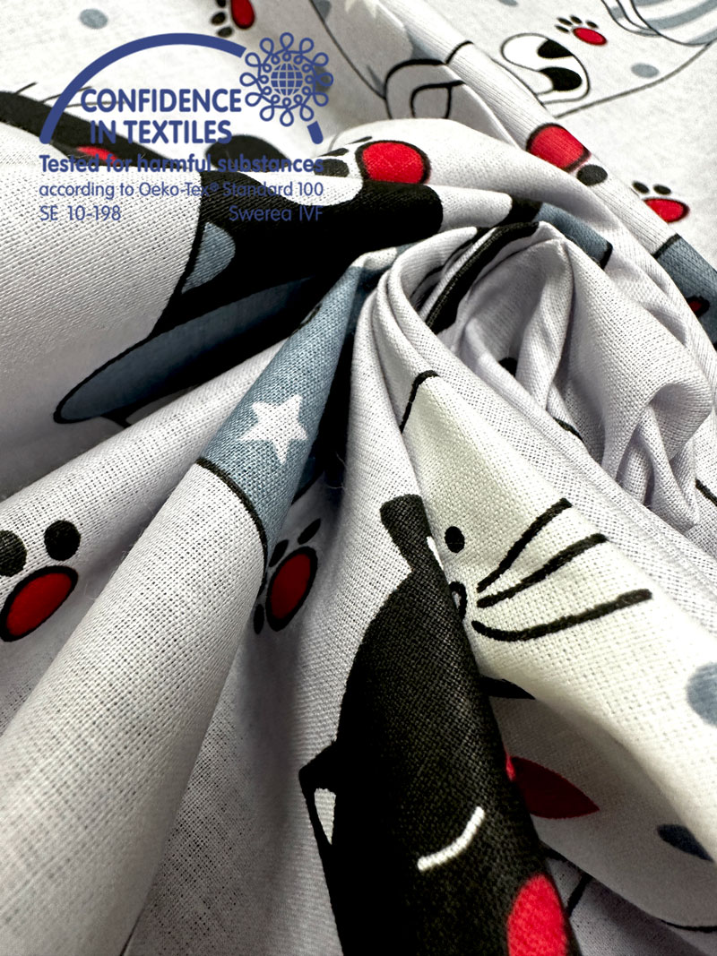 100% puuvill, 146 g/m2, TC 250. Kangas on OEKO-TEK 100 standardiga.