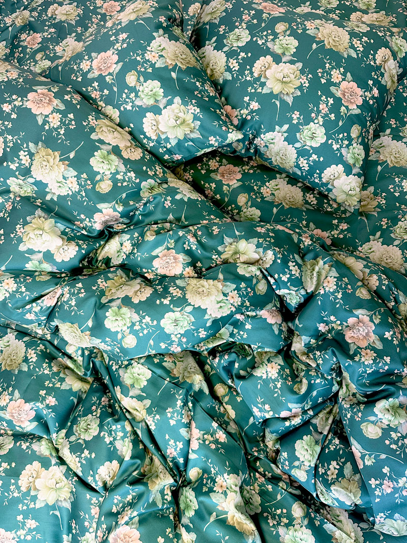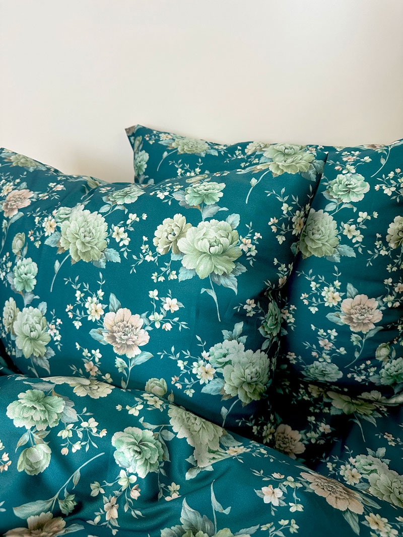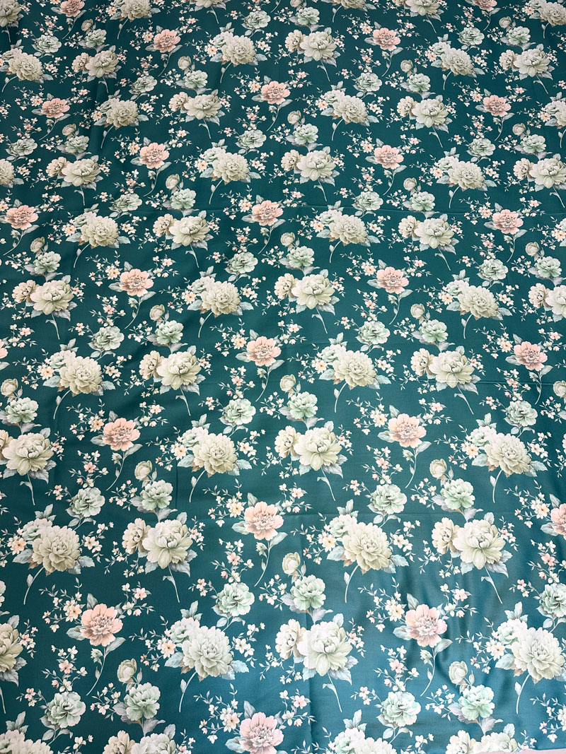 Padjapüür mako-satiin 40–4009 PetrolPeonies