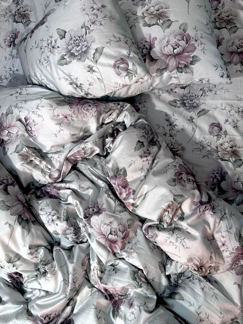 Padjapüür mako-satiin 40–5009 SilverPeonies