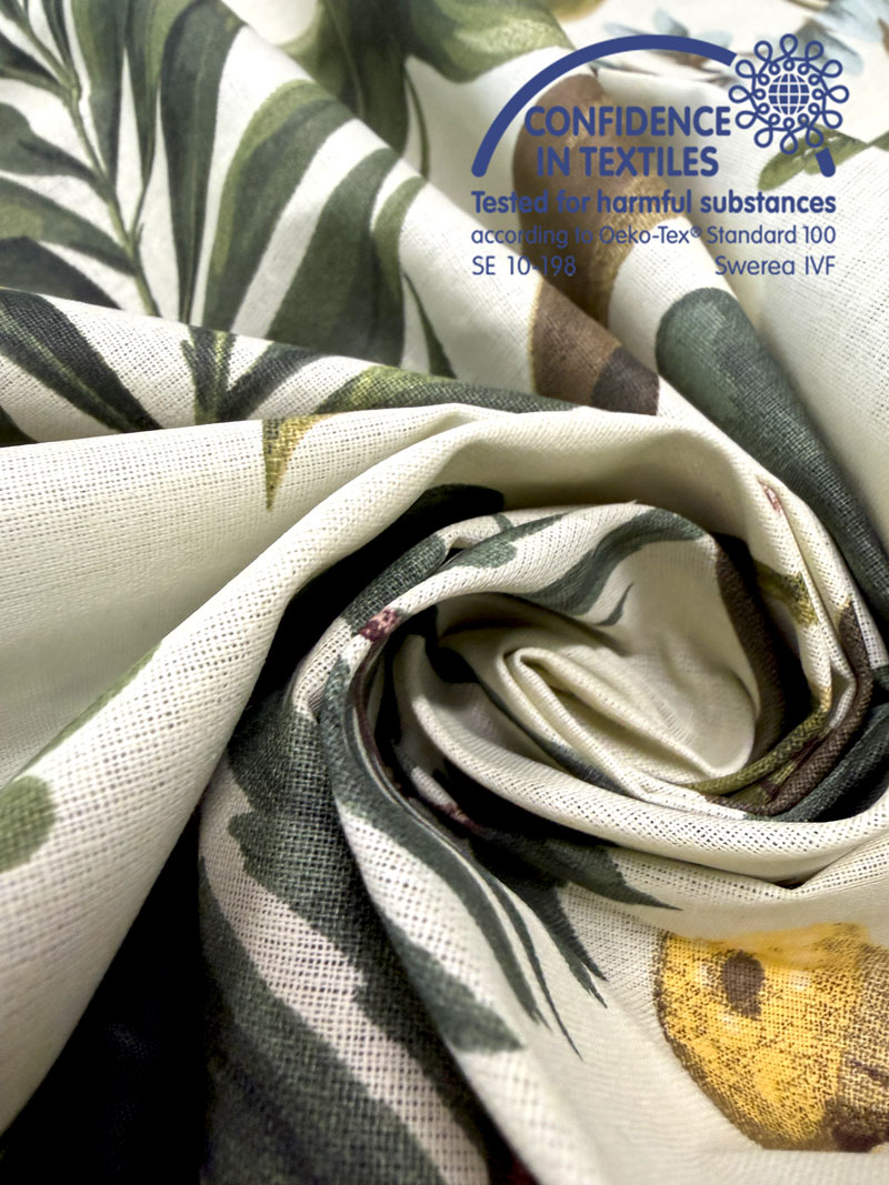 100% puuvill, 146 gr/m2, TC 250. Kangas on OEKO-TEX 100 standardiga.