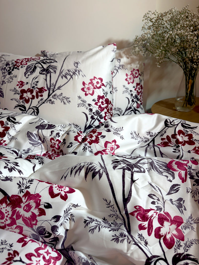 Voodilina puuvil­la­satiin 30–0043 RedFloral