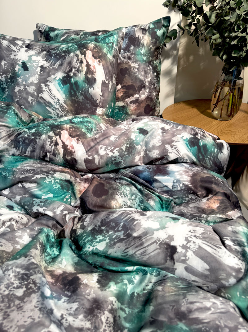 Otsid eksklu­siivset voodipesu? Mako-satiin on just Sinu jaoks. Mako-satiinist voodipesu üllatab isegi kõige nõudli­kumaid inimesi! See kangas on puuvilla tippk­va­liteet, mis on nii siidine, et seda võib nimetada puuvil­la­siidiks.  Valmis­tooted kuuluvad eliidi kategoo­riasse. Voodi­pe­su­komplekt on pakitud stiil­sesse tolmu­kotti, mis on valmis­tatud voodipesu tootmisel tekkinud jääkidest. Aitäh, kui annad kotile uue elu!