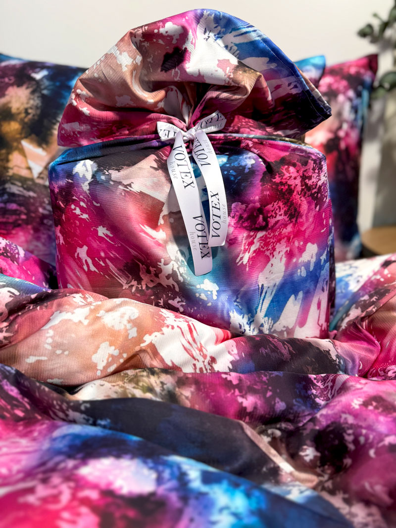Iga satiinist ja mako-satiinist voodipesukomplektiga tuleb kaasa voodipesu tolmukott. See kott on valmistatud Sinu voodipesu juurdelõikusel tekkinud jäägist, et vähendada jäätmekoormust keskkonnale. Saad seda kasutada voodipesu tolmukotina või mõnel muul Sinu jaoks olulisel otstarbel.