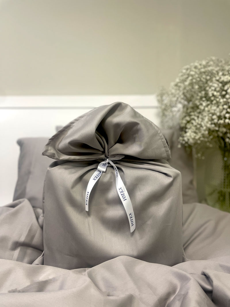 Iga satiinist voodipesukomplektiga tuleb kaasa voodipesu tolmukott. See kott on valmistatud Sinu voodipesu juurdelõikusel tekkinud jäägist, et vähendada jäätmekoormust keskkonnale. Saad seda kasutada voodipesu tolmukotina või mõnel muul Sinu jaoks olulisel otstarbel.