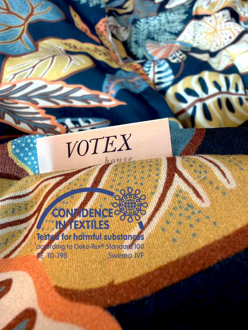 Kõigil meie poolt kasuta­ta­vatel kangastel on olemas OEKO-TEX 100 sertifikaat.