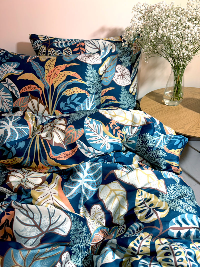 Voodi­pe­su­komplekt puuvil­la­satiin 30–6551 TropicalLeaves
