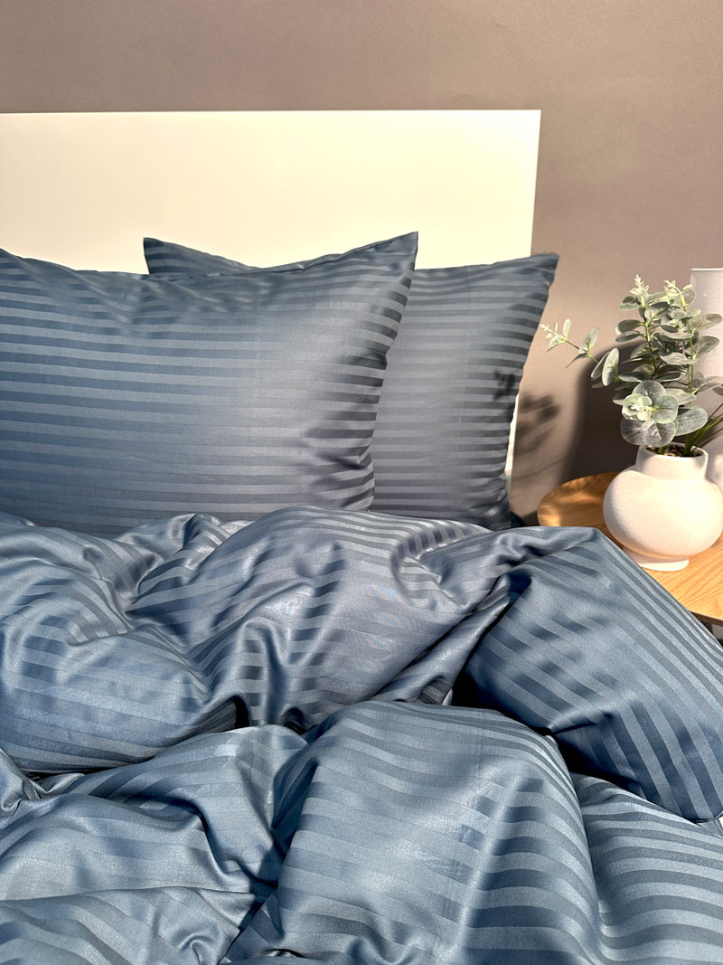 Voodi­pe­su­komplekt puuvil­la­satiin Triip­satiin StoneBlue