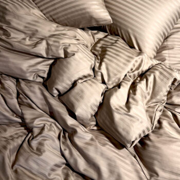 Voodilina puuvillasatiin Triipsatiin Taupe